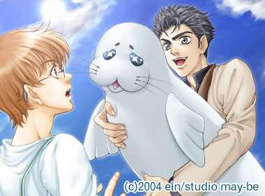 「おう、カイ! そこにいたのか!!」 「え‥‥。うわ‥‥!」 「ちょうどよかったぜ! 今おまえんトコ行こうと思ってたとこだ!」 「け‥‥ケンさん‥‥‥‥?」 威勢のいい声とともに駆け寄って来たのは、ケンさんだった。 ‥‥なんだか、ものすごく、ヘンなモノを抱えてる。 「あの‥‥それ、は?」 「これな! おまえにやろうと思ってよ!」 「え? ぼ‥‥ぼくに、ですか?」 「ほら、こないだ悪ぃコトしちまっただろ。だから詫びがわりにって思ってよ!」 「は、ぁ‥‥‥‥」 あらためて、ケンさんの抱えているモノを見る。 灰色で。 ‥‥2メーターぐらいあるんじゃないかな。 すくなくとも、たぶんぼくの身長ぐらいは‥‥間違いなくあると思う。 |