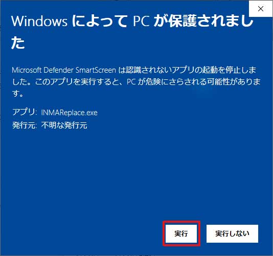 2.弊社サイトなどからダウンロードされたファイルであることを確認の上、「実行」ボタンをクリックします。